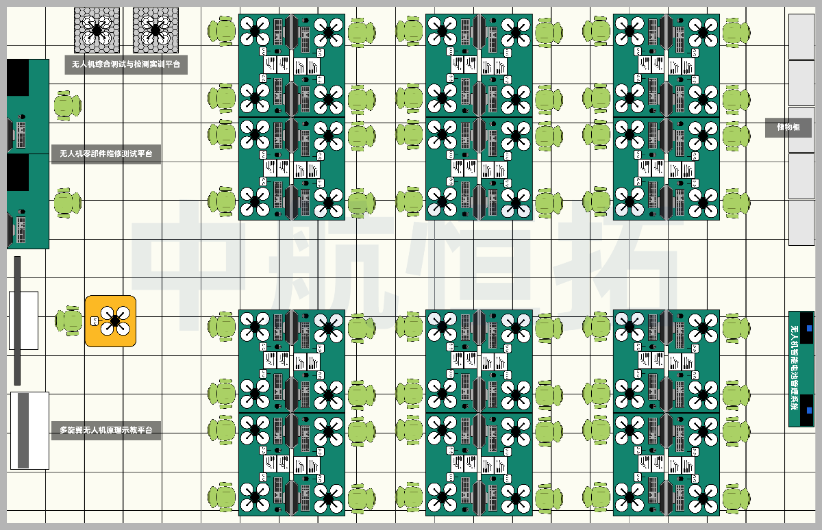 方案規(guī)劃建設(shè)配套齊全的現(xiàn)代化實(shí)訓(xùn)室,配備仿真教學(xué)、組裝調(diào)試、飛行訓(xùn)練及行業(yè)應(yīng)用等先進(jìn)設(shè)施設(shè)備。該實(shí)訓(xùn)環(huán)境不僅能支撐“理論-模擬-仿真-實(shí)操”一體化教學(xué),更能滿(mǎn)足組裝、調(diào)試、維修、檢測(cè)、行業(yè)應(yīng)用及創(chuàng)新設(shè)計(jì)等全流程實(shí)訓(xùn)需求。同時(shí),實(shí)訓(xùn)室兼具專(zhuān)業(yè)教學(xué)成果展示功能,可基本覆蓋無(wú)人機(jī)應(yīng)用技術(shù)專(zhuān)業(yè)教學(xué)的各個(gè)環(huán)節(jié)。