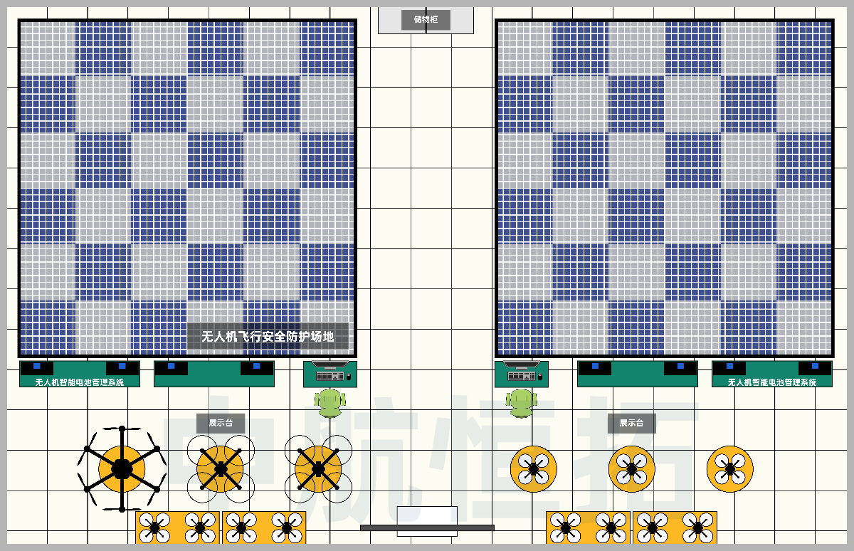 此區(qū)域建設(shè)有室內(nèi)飛行安全網(wǎng)等保護(hù)裝置,飛行區(qū)是為了讓學(xué)生在室內(nèi)練習(xí)飛行器操作與控制,無(wú)人機(jī)操控相關(guān)活動(dòng)都必須在專(zhuān)用場(chǎng)地中進(jìn)行,確保學(xué)生的安全,學(xué)生可以通過(guò)前期在電腦上模擬飛行,而后在無(wú)人機(jī)飛行專(zhuān)用場(chǎng)地內(nèi)飛行訓(xùn)練。